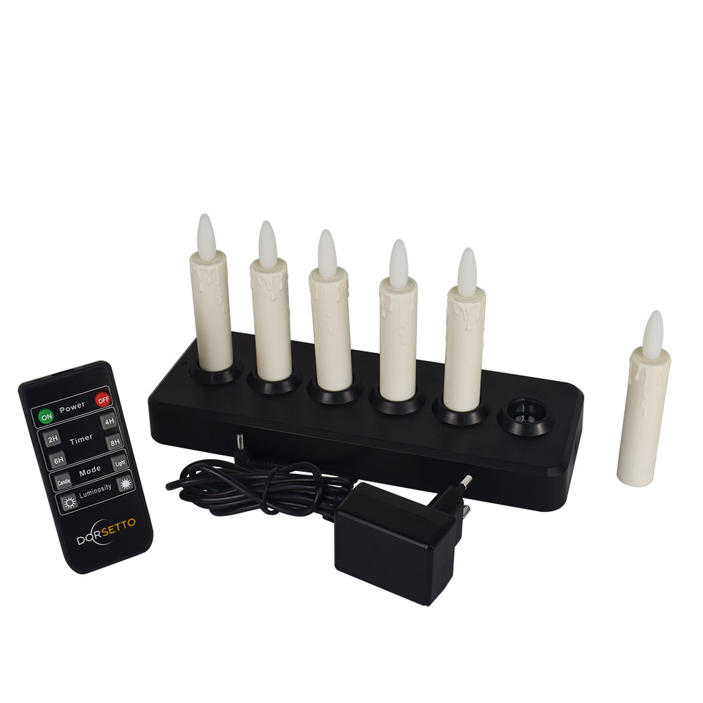 - 6 oplaadbare LED dinerkaarsen