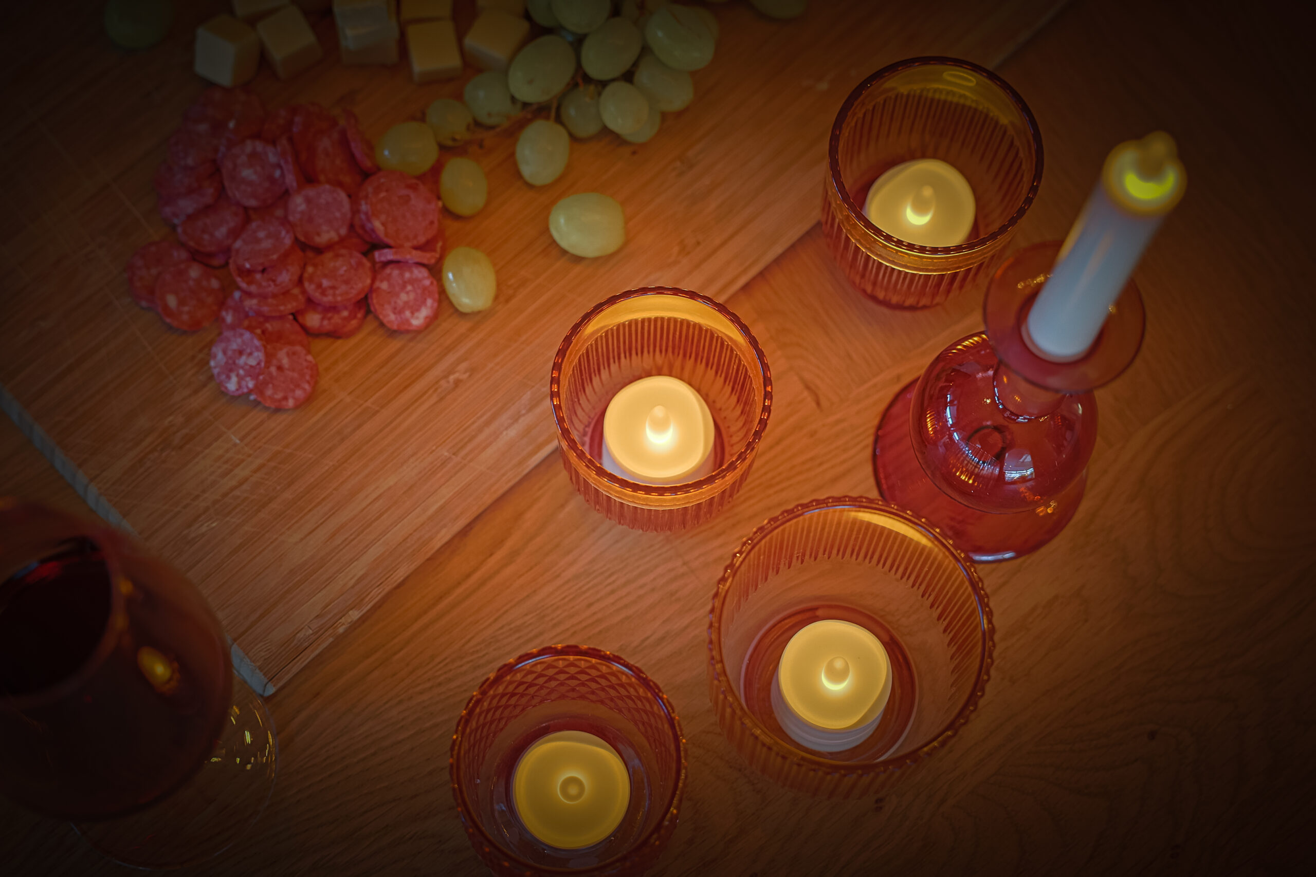 De LED waxinelichtjes geven dezelfde warme sfeer maar zonder:
