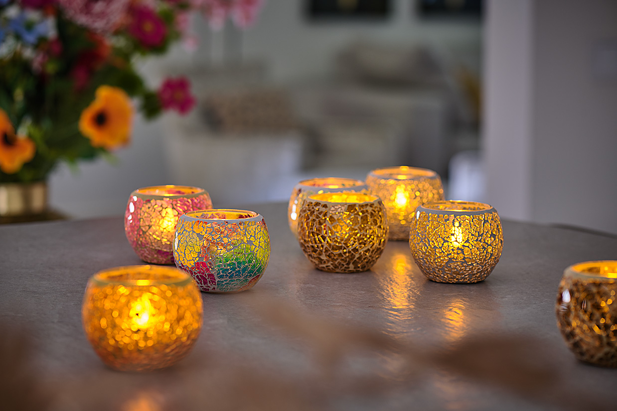 Voeg direct warmte en gezelligheid toe aan uw interieur met een stijlvolle theelichthouder. Deze leuke theelichthouder met LED waxinelichtjes zorgt meteen voor sfeer in huis. Het is speciaal ontworpen om uw huis te verlichten met de subtiele gloed van LED waxinelichtjes.
